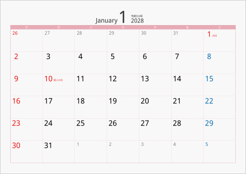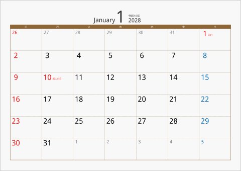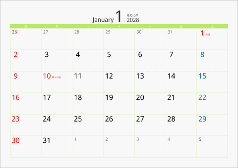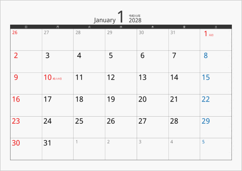 日曜始まり、月曜始まりのカレンダーを選べます。