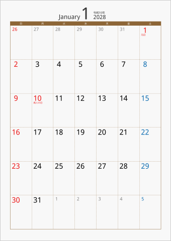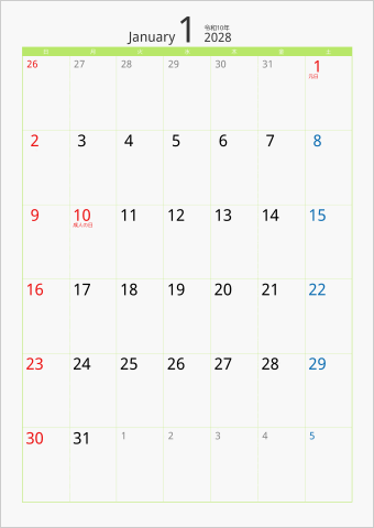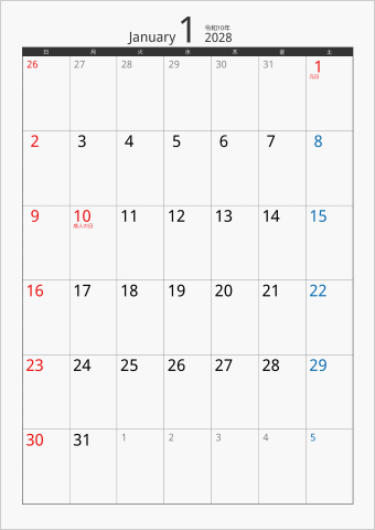 日曜始まり、月曜始まりのカレンダーを選べます。
