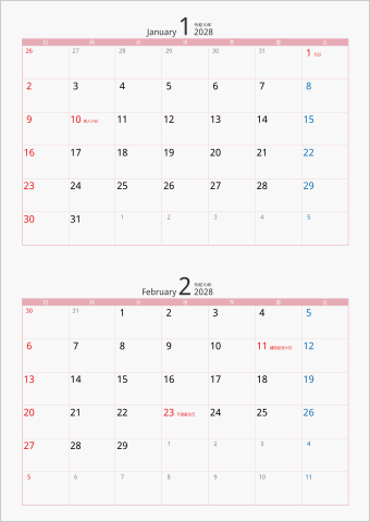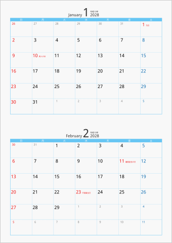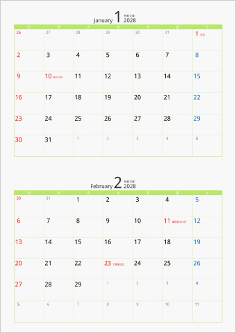 日曜始まり、月曜始まりのカレンダーを選べます。