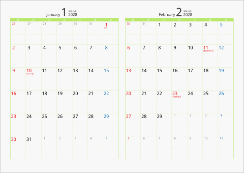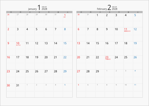 日曜始まり、月曜始まりのカレンダーを選べます。